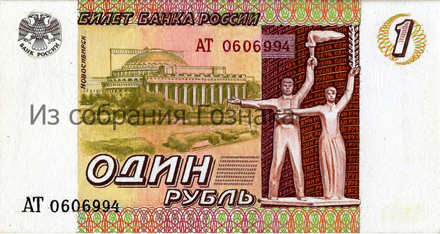Проект купюры номиналом 1 рубль с достопримечательностями Новосибирска представлен в основной экспозиции Музея истории денег. Этот эскиз был создан в 1994 году, когда художниками Гознака разрабатывались новые российские банкноты «городской серии».