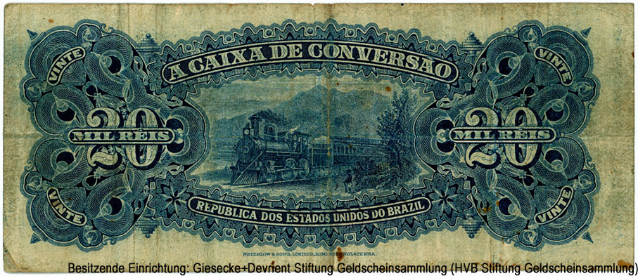 Республика Соединённых Штатов Бразилии. Caixa de Convers?o. 20 мильрейсов — lei n. 1.575 de 6 de Dezembro de 1906.